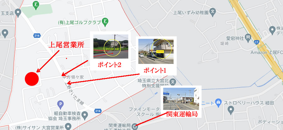 周辺拡大図 カインズ大宮店・運輸局方面からのご案内